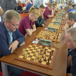 The next moring we walked to the tournament hall, a very nice building erected with support of the European Union - thank you for that, EU. Unfortunately, after several short and friendly speeches, the start of the rapid tournament turned out to be quite complicated. So we started very delayed, but the small German team was quite successful in the beginning.