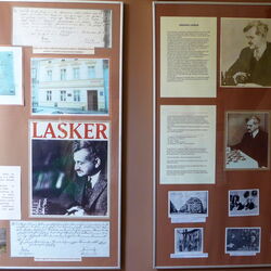 Mrs. Halina Olkiewicz-Fijałkowska, the director of the museum, was most friendly to give a the opportunity to browse through the very nicely arranged exhibit. At the end Tomasz and I took the opportunity to sign the Lasker monograph of 2009, which is one of the "treasures" of the museum.