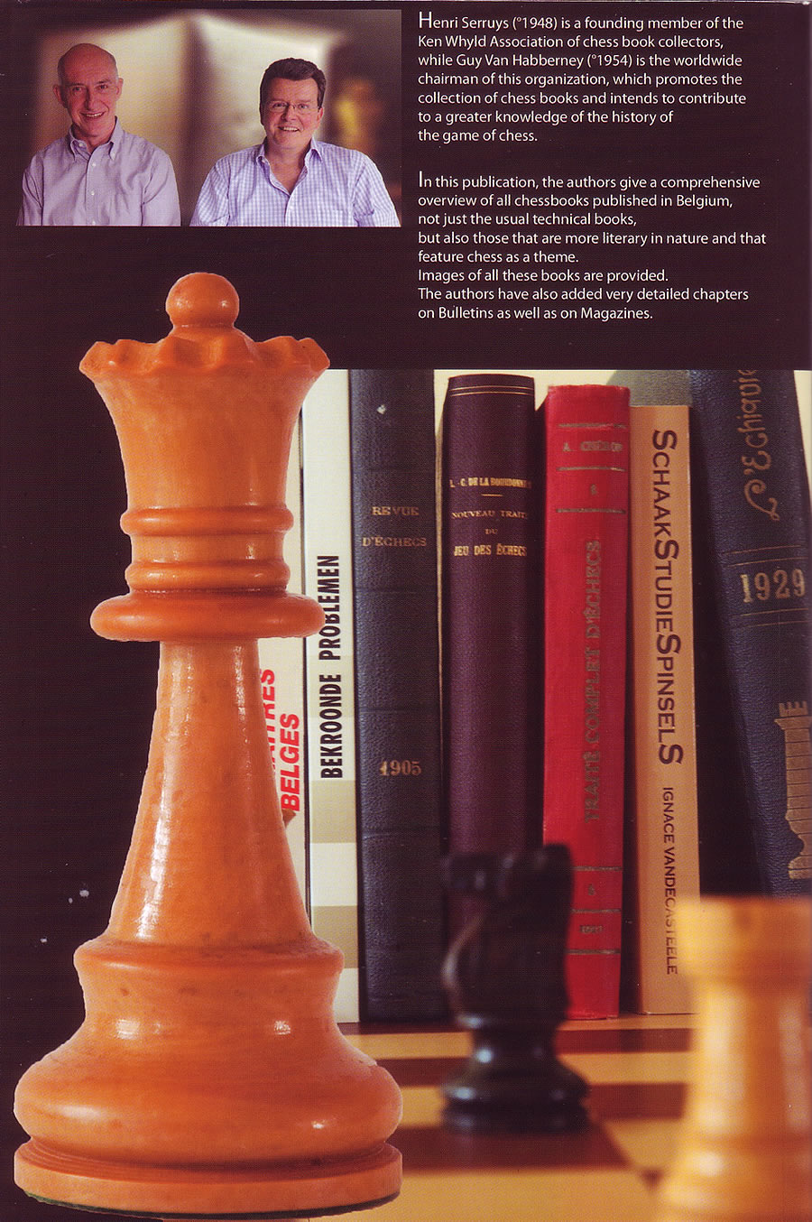 This teamwork of cash auditor and chairman is definitely a "raisin in the cake" of chess biblio-graphies, as the meticulous compilation of the complete Belgian chess literature mates here with an exquisite color printing whose impact is unveiled above all by the numerous pictures. Many information boxes (highlighted in color) on relevant authors, photographs of chess personalities, a correlation table (as to L/N and Cleveland) and an index of names complete a work which belongs to the required stock of each bibliographically interested chess friend.