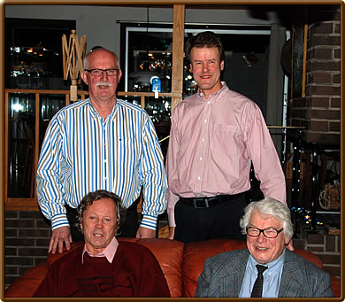 Seine Geburtstagsfeier fand erst 15 Tage später (am 18. Januar) im Hause von Peter Holmgren statt, der auf dem Bild zusammen mit Calle Erlandsson und dem Präsidenten der Stockholmer Schach-Vereinigung – Sven-Gunnar Samuelsson (unten links) – zu sehen ist.
