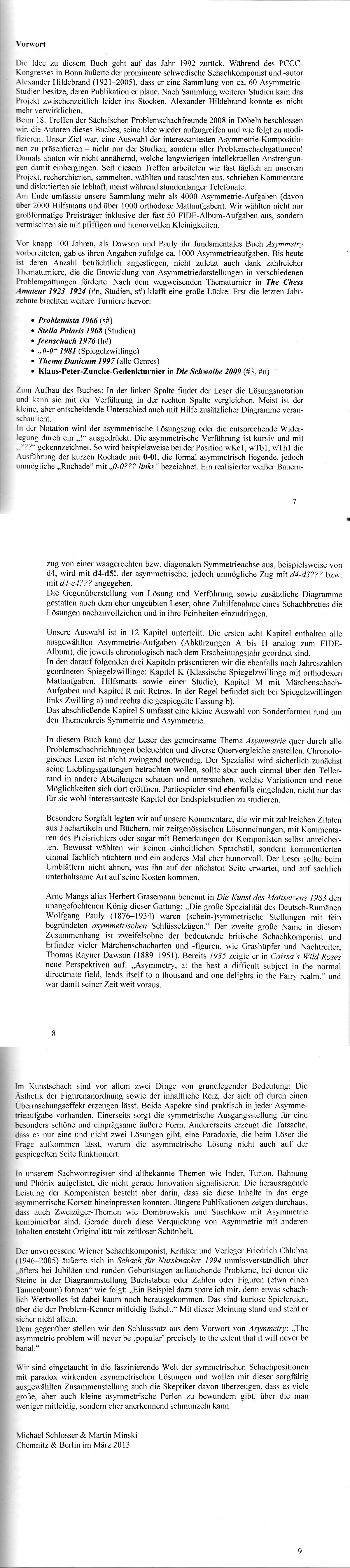 A just released problem book by Michael Schlosser and Martin Minski stands in the tradition of T.R. Dawson’s and W. Pauly’s classic Asymmetry (A.C. White’s Christmas Series, 1927). Their work ASymmetrie contains a stupendous wealth of problems from all genres composed in the last ca 170 years, the earliest dating from 1841.