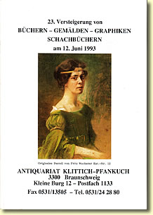 The oldest "Klittich-Pfankuch catalogue" in my archives still dates from the year 1993 and has the No. 23 - probably it was also the first which included a considerable number of chess books - after all more than 860 entries.