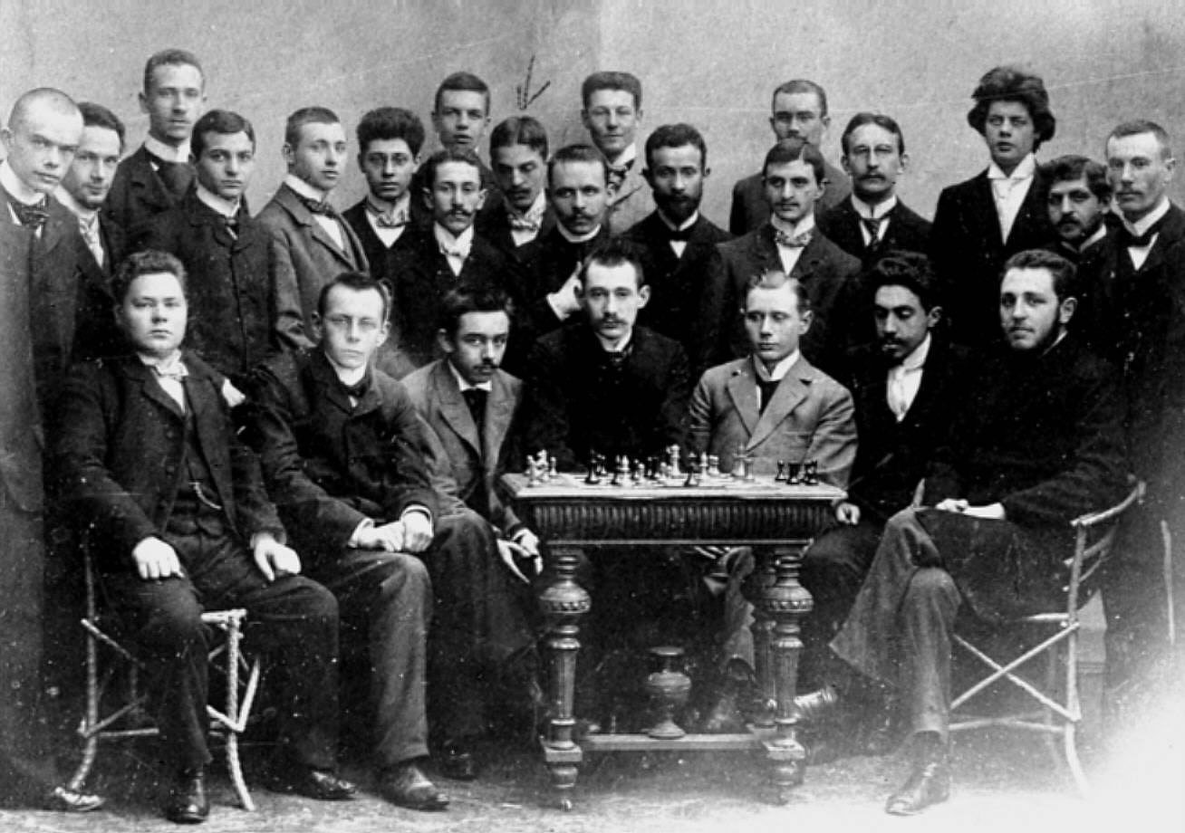 Sitting in the middle the then president of the summer term – for that we may refer to the Akademische Schachblätter, May 1902, p. 43.