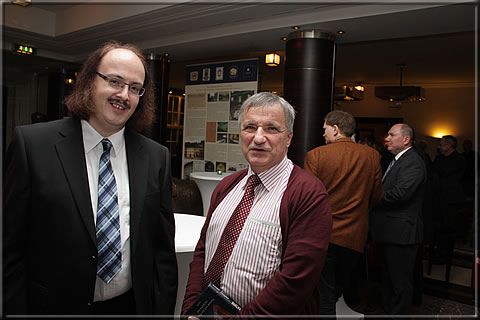 At the reception: The Russian chess legend GM Yuri Averbakh had come to Weimar with his daughter only to attend this event; on the right Thomas Thomsen. -