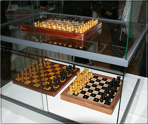 Roger Klittich informed the audience about the auction of the chess set collection of Mathieu and Ine Kloprogge. Upon request of customers, particular items of the collection could be viewed in the afternoon, understandably a public presentation was limited here due to insurance issues.