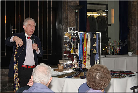 Rudolf Kaiser talked about the composition, manufacture and care of ties – his nicely arranged and varied choice of chess ties was a real eye-catcher. On the occasion of our meeting Mr. Kaiser also offered a limited edition of only 10 chess pocket squares (for 29 € each), I guess all have been sold.