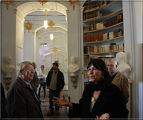 The rococo hall of the library. Our charming guide, Mrs. Kornelia Lukoschek, has also written a nice book: "Weimar – Eine literarische Stadtführung" (2012), it was available at the reception desk of the ELEPHANT for 10 €. -