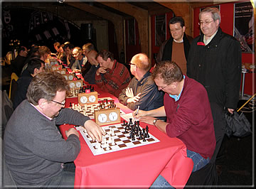 After our arrival at Wijk Bernd Schneider was just in time to enrol for the rapid tournament which was held for the first time in the Pavilion on both afternoons of this weekend. Guy van Habberney and Ralf Binnewirtz are kibitzing a little.