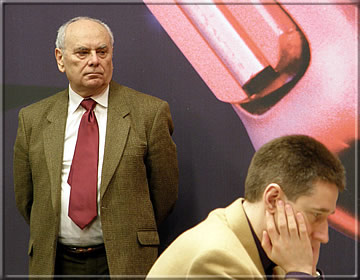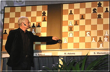 One of the old chess legends taking part in the Honorary – Lajos Portisch looks critically at Michael Adams’ game. But this day he couldn’t avoid a defeat against the irrepressible Kortschnoi.