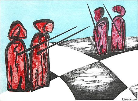It began three years ago when two of the approx. 11 000 residents of the Basque commune Azkoitia, José Manuel Sierra and his son David Sierra resolved to enhance the popularity of chess in their region. The Basques invited a selection of Scottish chess players to participate in a tournament, and the German artist Elke Rehder received an invitation to present her works of chess art on the occasion of the match Basques vs. Scots. Under the auspices of the Basque Chess Federation and the Ministry of Sports and Culture, a festival came into being which attracted international attention. In 2015, with the collaboration of the Spanish chess journalist Leontxo García the ExpoChess event was extended by additional conferences.