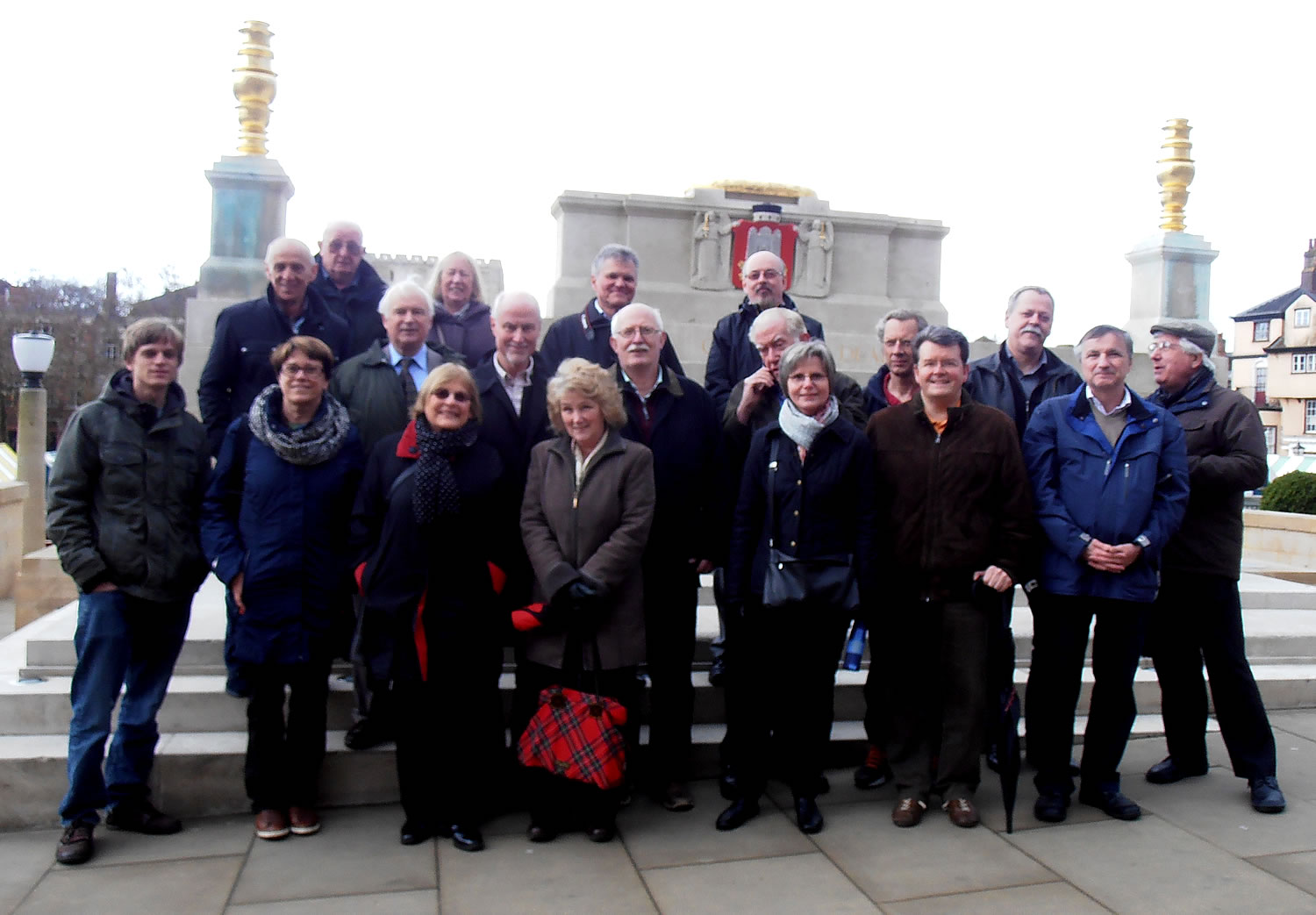 Group photo from the city tour on Friday; missing are Tony Peterson and Jimmy Adams who arrived on Saturday, as well as Steve Giddins and Bernhard Cafferty. 1st row (from left): Hendrik Grondijs, Rieneke van Zutphen, Winifred van de Velde, Kathleen Hindle, Marie-Theres Saremba, Guy Van Habberney, Michael Negele, Tony Gillam. 2nd row: Harrie Grondijs, Owen Hindle, Bob van de Velde, Calle Erlandsson, Gordon Cadden, Jurgen Stigter, Per Skjoldager. 3rd row: Mike Sheehan, Mrs Sheehan, Andreas Saremba, Tim Harding.