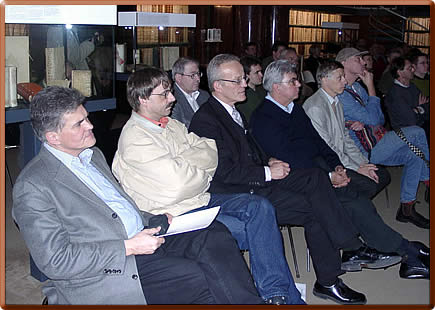 A warm welcome by the library director, Prof. Dr. Helwig Schmidt-Glintzer, was followed by an introductory lecture of 20 minutes, given in English by Dr. Gillian Bepler. The big library hall provided a truly impressive backdrop with the shelving as an integral part of the architectural concept of the room. Equally overwhelming are the stocks: the library comprises about 850,000 volumes, including about 415,000 printed before 1850, about 3,500 incunabula, 75,000 of the 16th century, 150,000 of the 17th century and 120,000 of the 18th century.