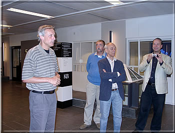 Henk Chervet (on the right) - his responsibility was the chess specific guided tour - having a talk with Peter Holmgren, Bert Corneth and Andreas Saremba. -