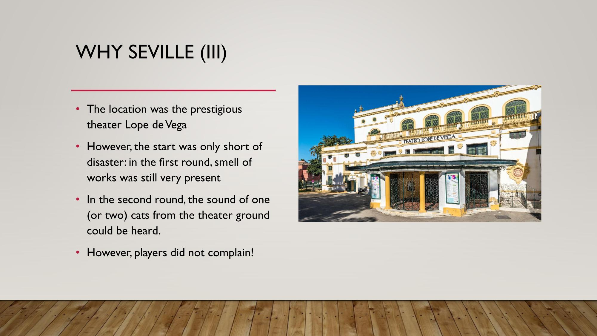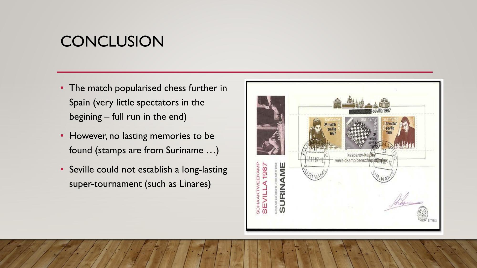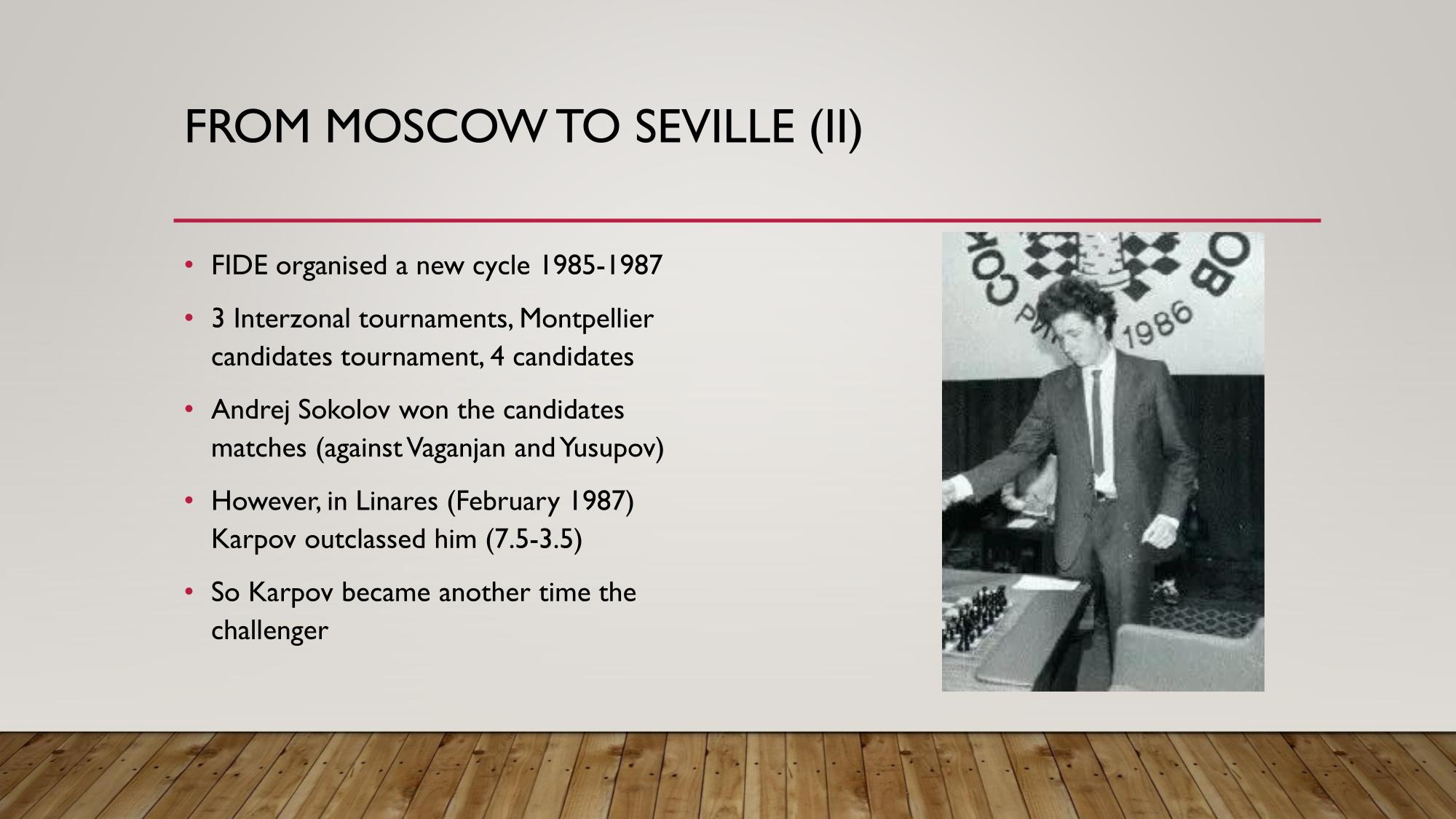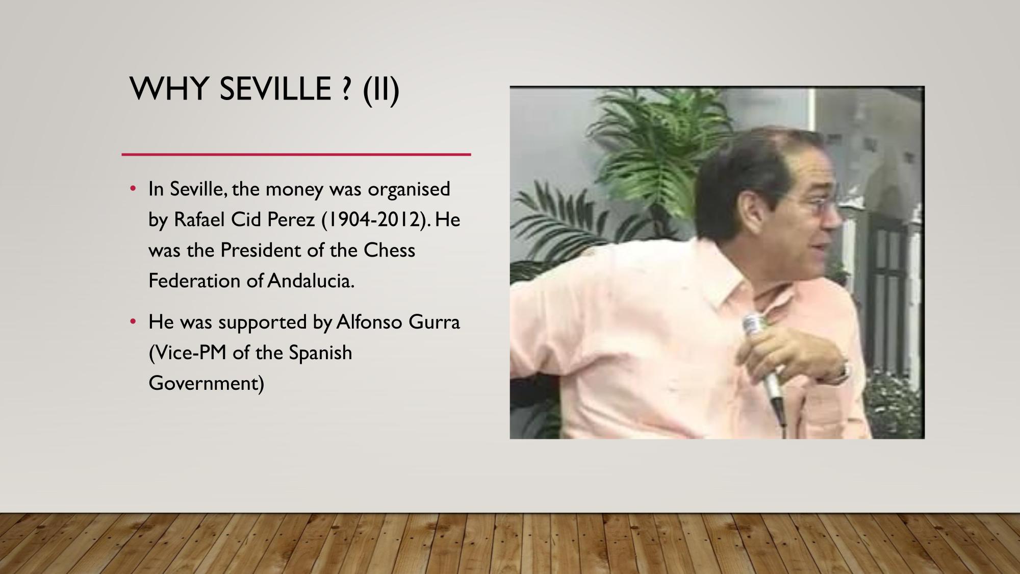 He recounted the World Chess Championship played in Seville in 1987 between Kasparov and Karpov.