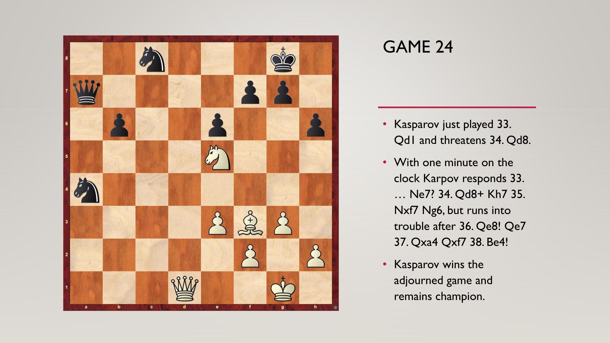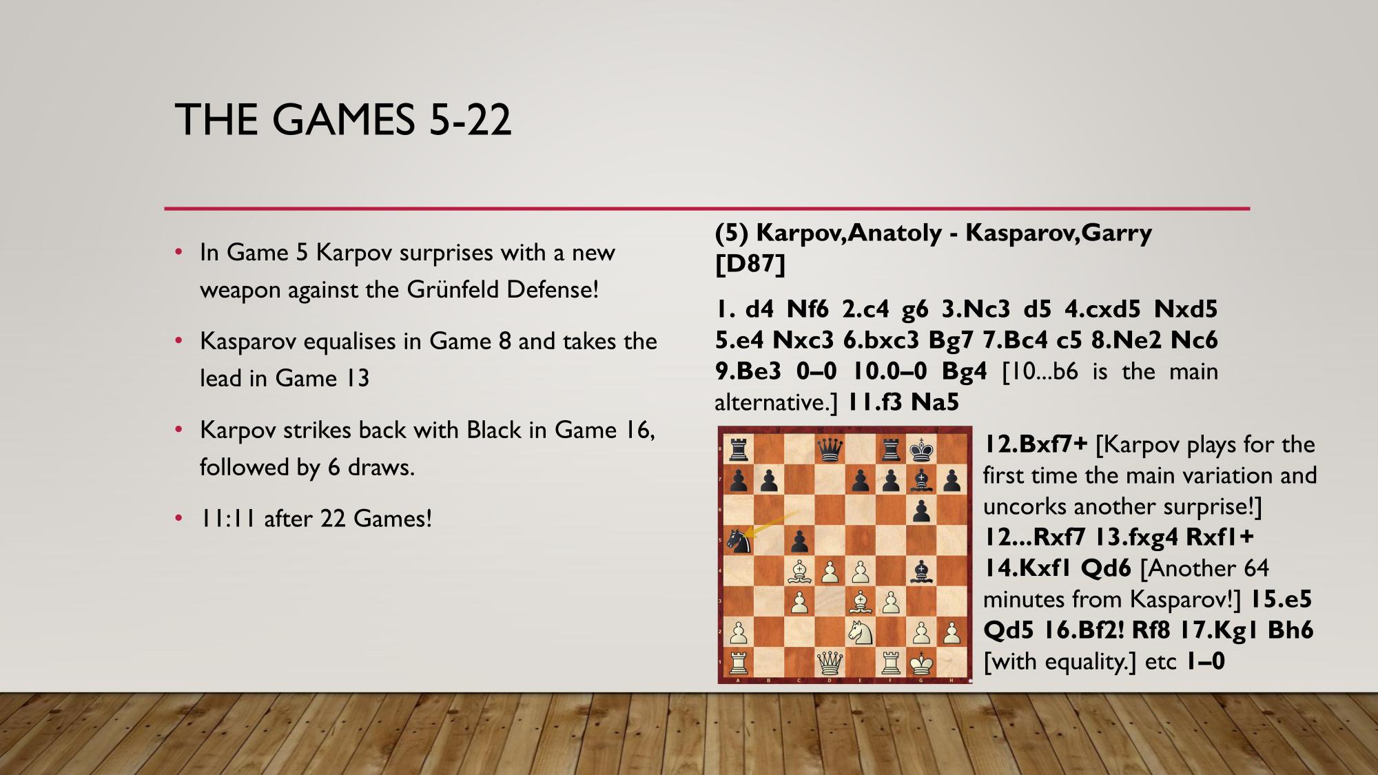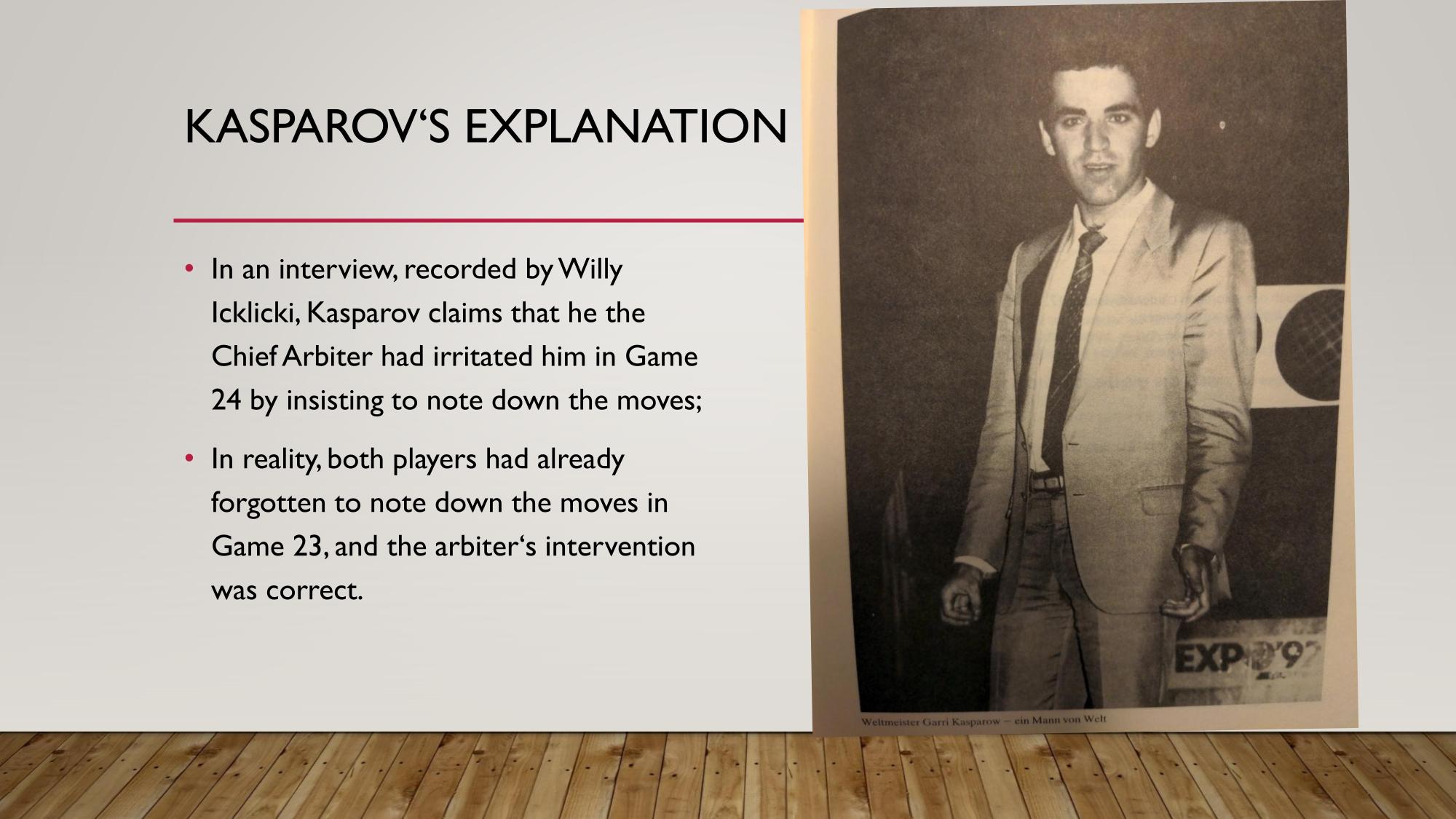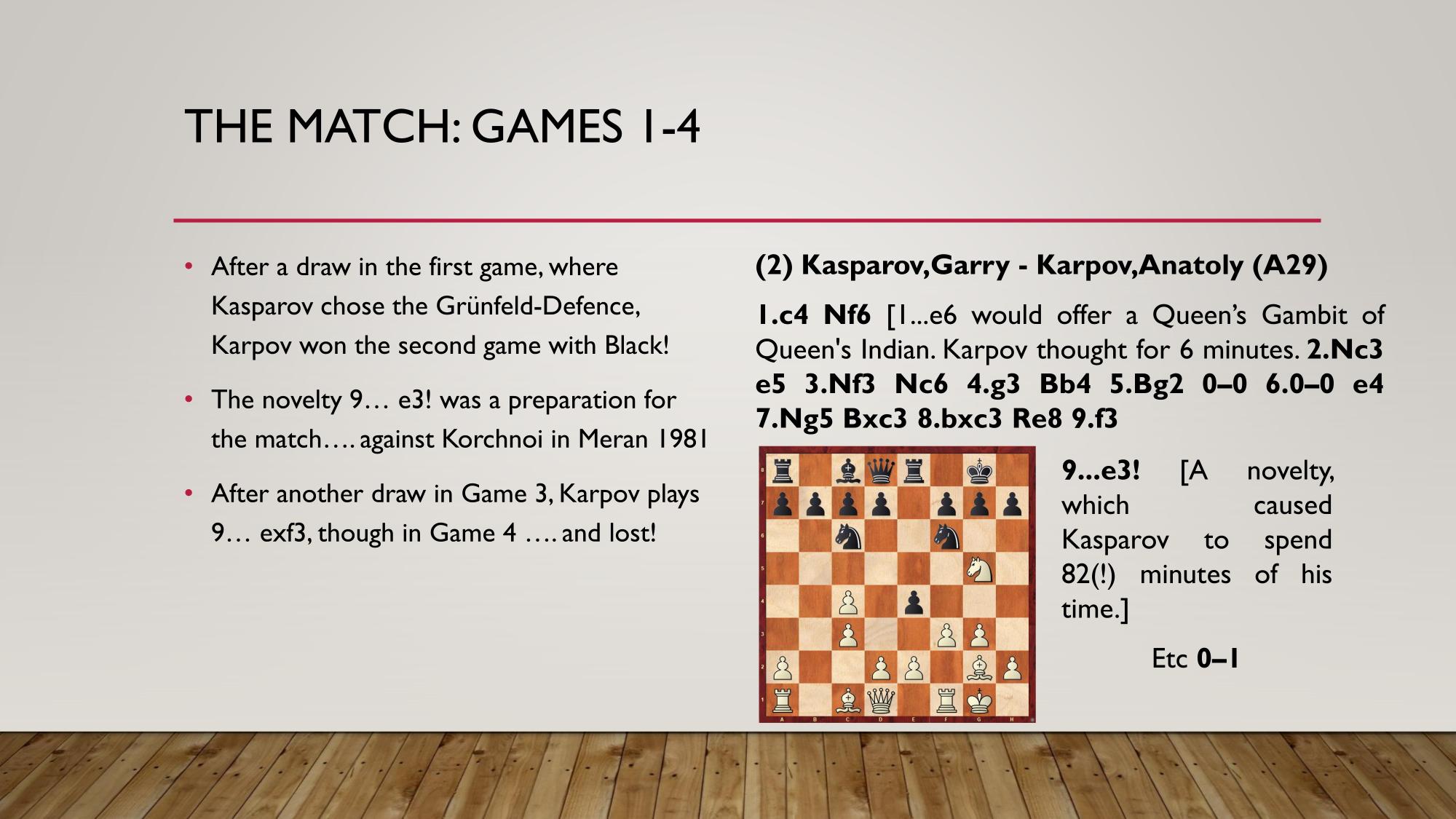 He recounted the World Chess Championship played in Seville in 1987 between Kasparov and Karpov.