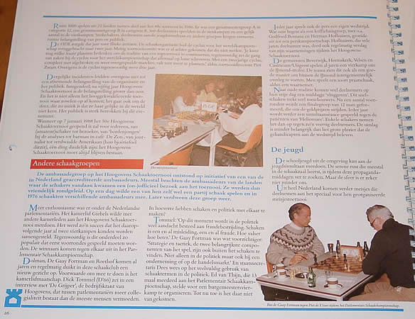 The spectators' prize went to a wild game of pinball between the highest rated Dutchman and the Dutch Champion. First Black (van Wely) missed a win, later on White (Sokolov), so finally it turned out neither player could avoid the move repetition.