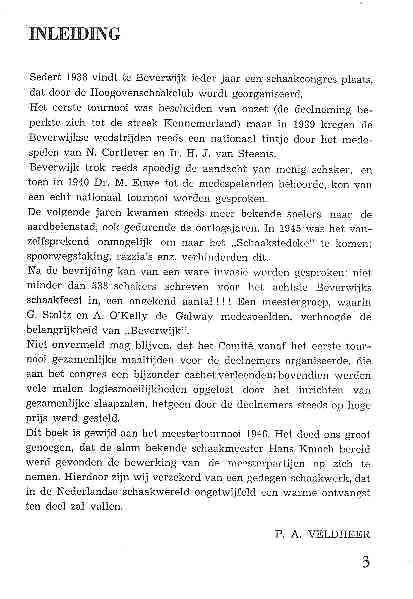 The first one is "Hans Kmoch, Het Schaakcongres Beverwijk 1946 - published by the Hoogoven-Tournooiclub" - which gives also a short overview on the first tournaments by P.A. Veldheer: page 3-4