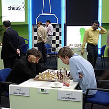 After a day of rest, the players in the Grandmaster Group A continued where they had left off resulting in another round of fierce battles. Unlike round 5, round 6 produced several victories for the leaders. First to walk off stage was Michael Adams. His opening advantage against Evgeny Bareev seemed to be insufficient to win, but the Russian grandmaster again blundered badly in his beloved French. Disappointed after losing a key pawn, Bareev immediately resigned - just before Ralf Binnewirtz and I arrived. Viswanathan Anand had to invest a lot more energy to beat his opponent, Alexey Shirov. Out of a Petroff Defence Anand reached an endgame with very active pieces. His piece activity was converted into a rook endgame with two pawns up, that seemed to be winning. However, Anand's pawns were a bit too eager to get across when the Indian grandmaster erred with 26.f4?, where 26.f3! would have been correct. Shirov possibly missed something later on when he tried to get a theoretically known drawn position, although even Anand was not sure of this.