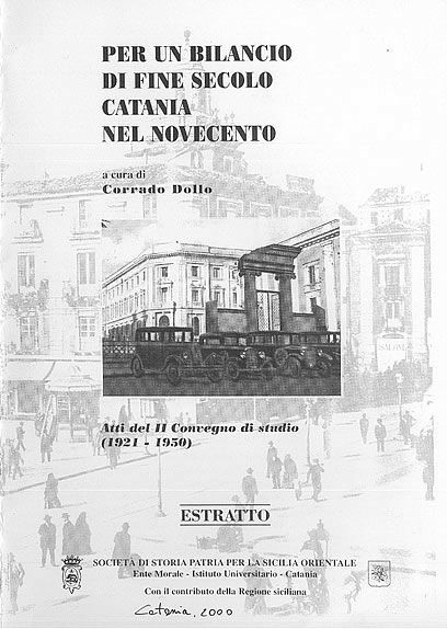 We are pleased to say that he let us have his contribution "Per un bilancio de fine secolo Catania nel Novecento", Catania July 2000, p. 657ff as an offprint: